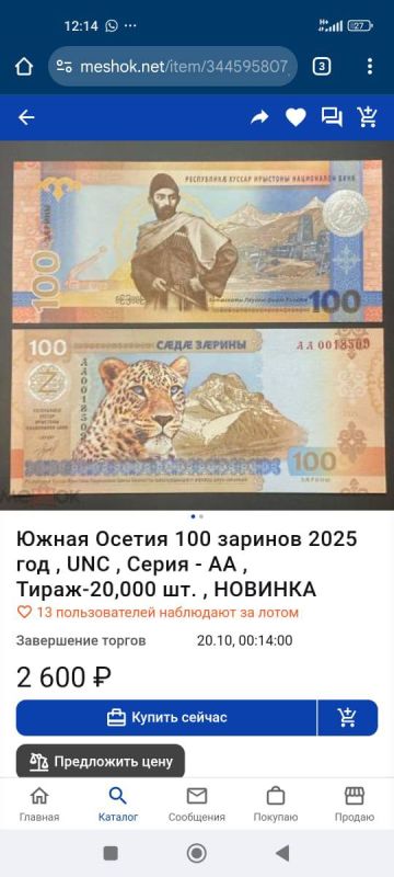 Первая банкнота Южной Осетии взлетела в цене за пределами республики
