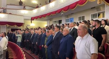 На мероприятии присутствуют высшие должностные лица страны во главе с президентом Аланом Гаглоевым, а также бывшие президенты Людвиг Чибиров и Леонид Тибилов. Кроме того, на...