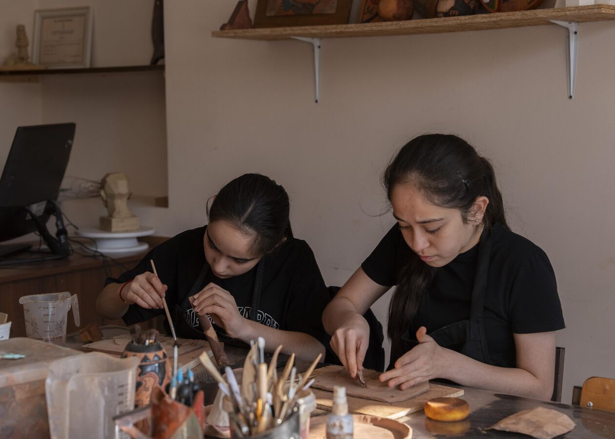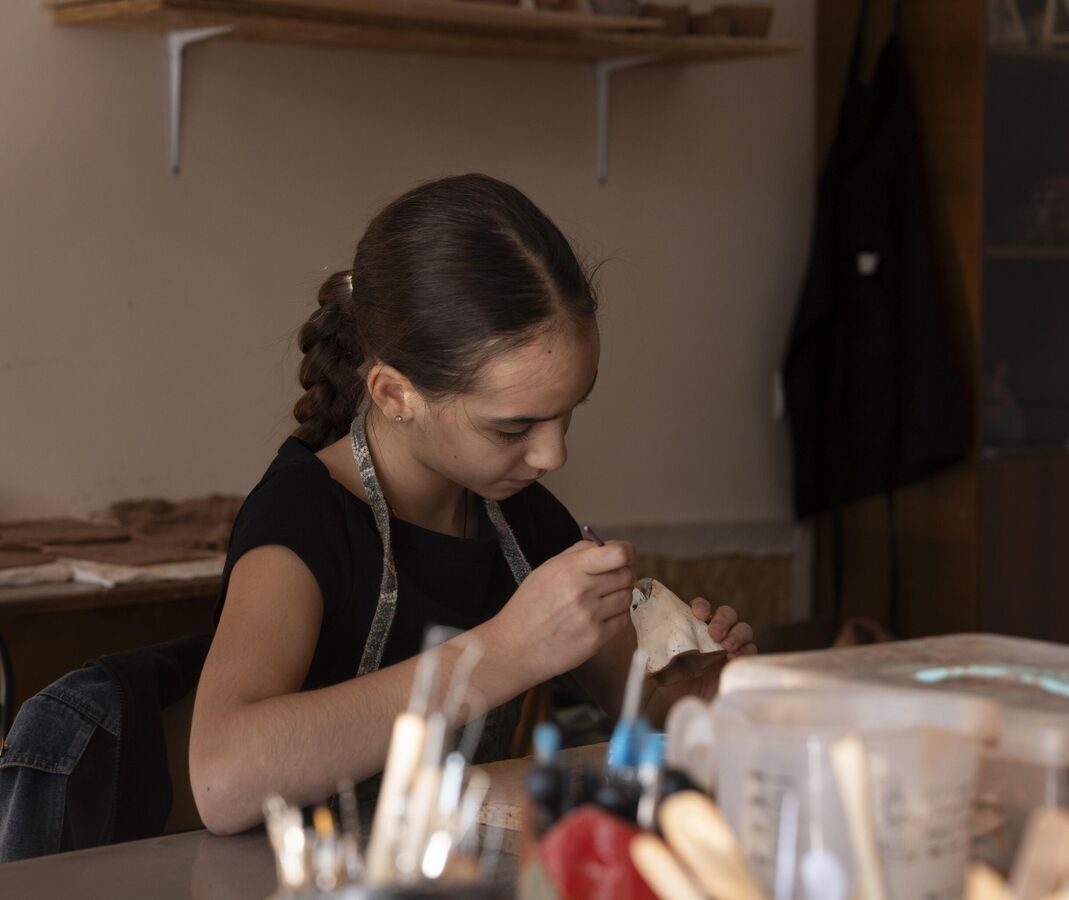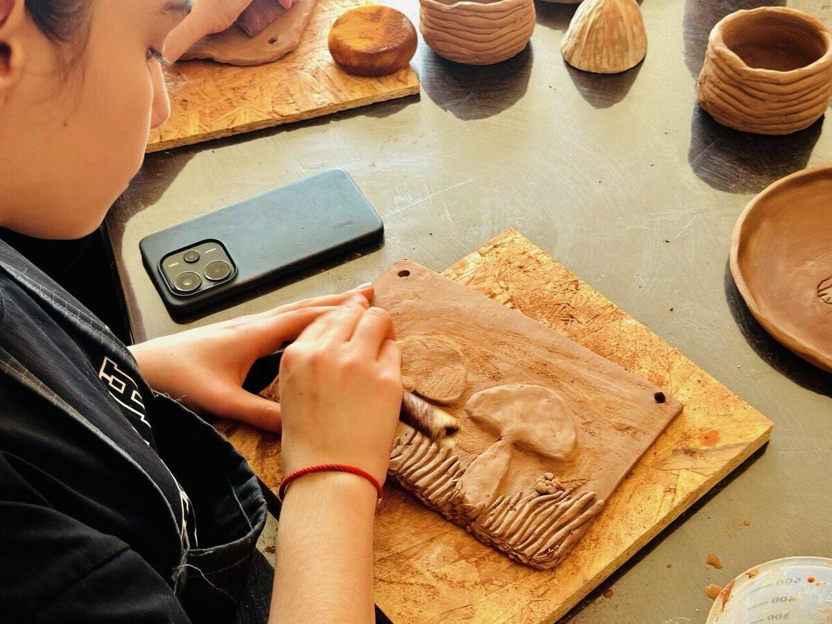 Особая атмосфера на занятиях — без телефонов и отвлечений."Я ни разу не видела, чтобы кто-то доставал гаджет. Даже когда звонят родители, дети отвечают: "Я перезвоню, они знают, что я на занятиях". Они полностью погружаются в работу, как будто оказываются в другом мире — без экранов, только глина и творчество", — рассказывает Зассеева.
