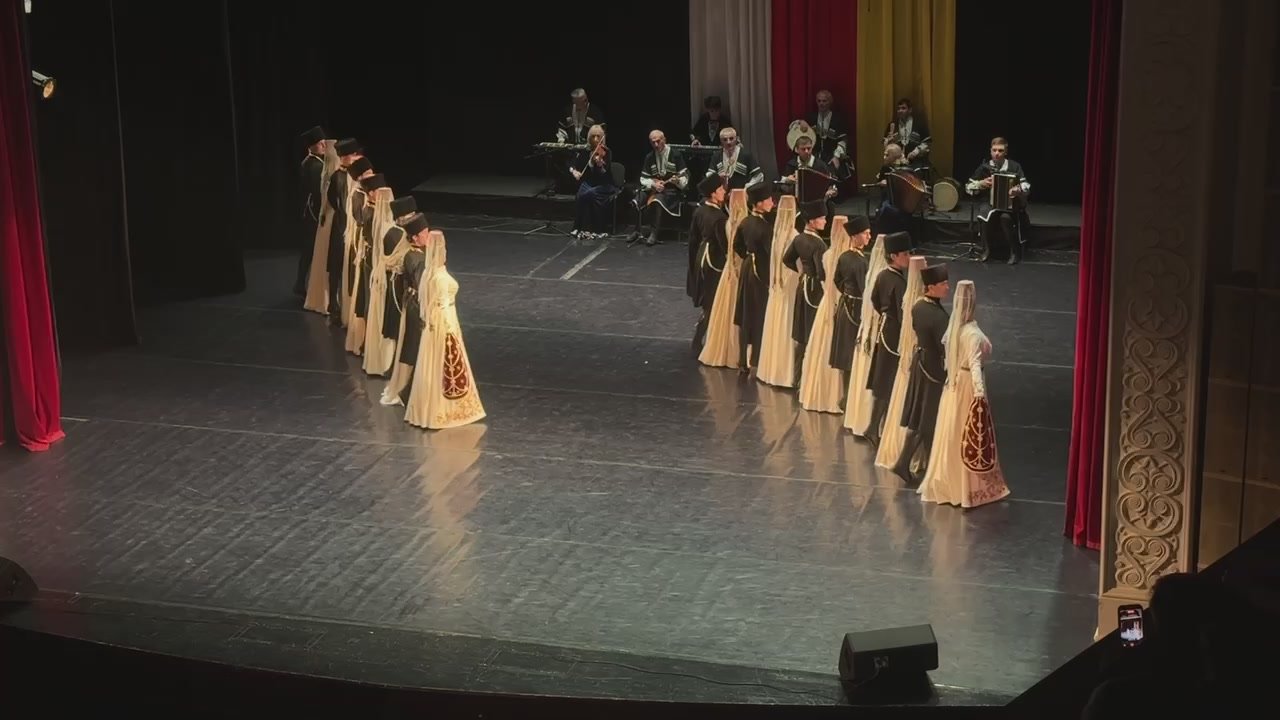 Легендарные ансамбли "Симд" и "Алан" на сцене Госдрамтеатра в Южной Осетии представили совместный танец "Симд"